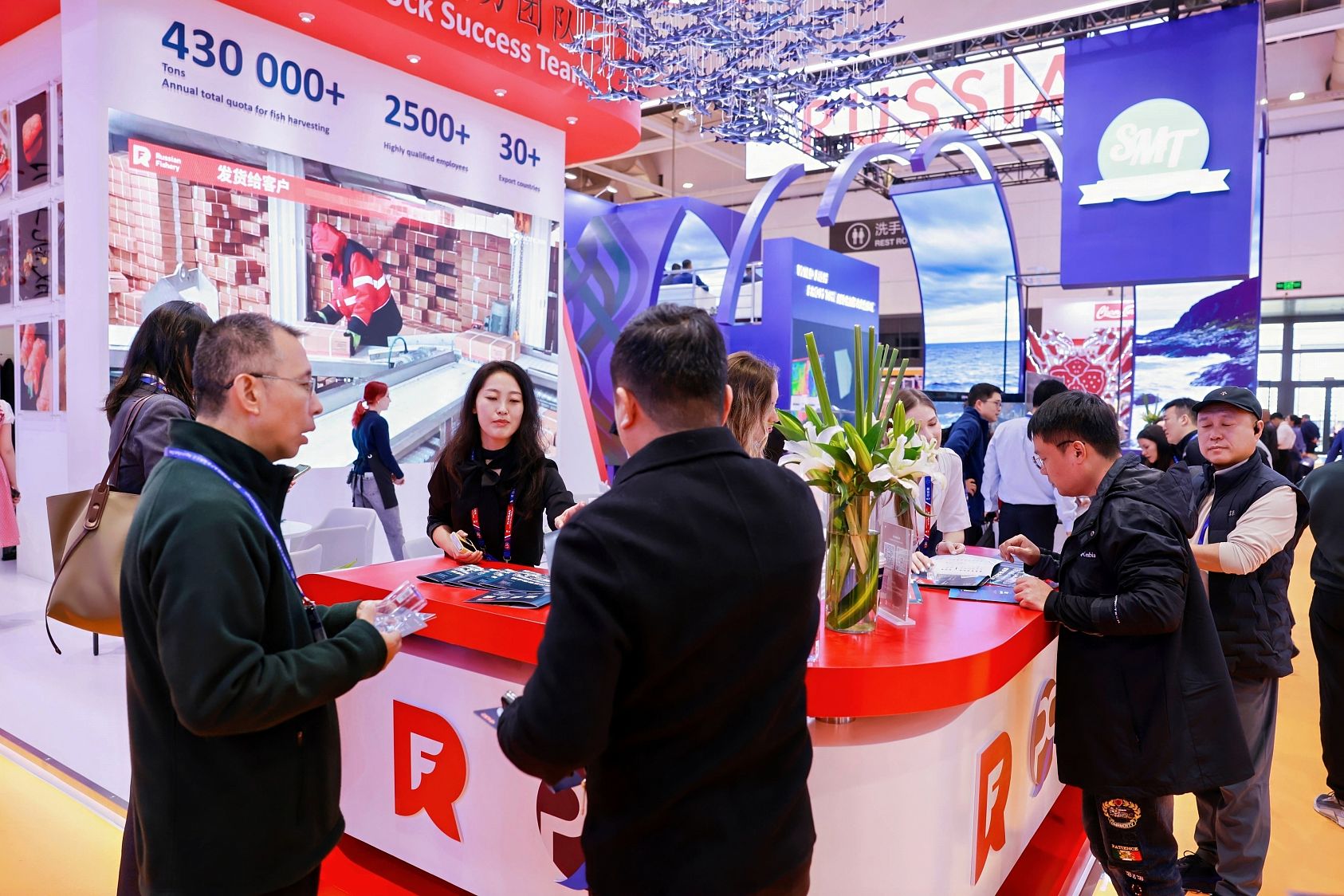 展会期间,俄罗斯渔业公司与其独家分销商Pacific Rim集团联合展位举办了数十场商务会谈,与中国、日本、韩国及东南亚多国代表就各类产品合作事宜进行了深入交流。展出期间,俄罗斯渔业公司与恒生、佳阳、澎湃、盘渔(上海)、鼎味泰、辽渔、威海威达、中国星渔、汤臣、J.Marr等中国知名水产加工企业举行了系列商务洽谈。明太鱼子品类洽谈专场尤为瞩目,场次安排几乎无缝衔接,彰显中国加工企业对这一品类日益增长的战略关注。
